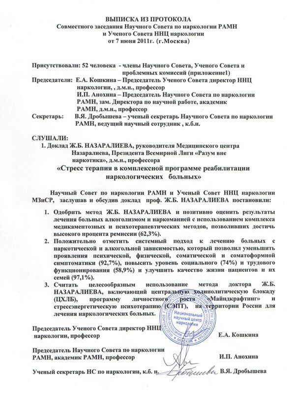 خلال 31 سنة من العمل زار المركز أكثر من 18,000 عميل من 35 دول. طريقة نزارالييف محمية بموجب 11 براءة اختراع، معترف عليها في روسيا وكان موضع تقدير كبير في الولايات المتحدة الأمريكية